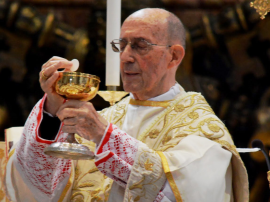 But if in anything he has stood out in a special way, it has been in his Eucharistic piety and devotion, which have been translated in a special way into the Adoration of the Blessed Sacrament – which by his express will has been exposed throughout the day in the diocesan Cathedral since the 1980s – and in his care for the organizing of the feast of Corpus Christi, with a procession of the Blessed Sacrament through the streets of the city, and in his homilies for the occasion.